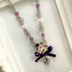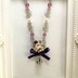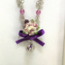 ご覧いただきましてありがとうございます。 樹脂粘土製のパーツ、アメジスト、チェコビーズ、パールビーズ、かごチャーム、リボンを使用したネックレスです。 かごチャームの中に4mmのアメジストが2個入っています。 チェーン部分には葡萄のような色合いのチェコビーズと薄ピンクのパールビーズを組み込み、華やかなデザインになっています。 こちらのネックレスはサフィックス社のスウェットバリアを使用しての金属アレルギー対応も可能です。 ご希望の方は右のメニューより「金属アレルギー対策有」の項目を選んでください。 ※注意※ ☆お花のパーツは樹脂粘土でできています。強い力や水濡れに弱いので、充分ご注意くださいませ。 ☆定形外郵便でのお届けのみとなります。 【Size】 チェーン:44m ・パールビーズ、チェコビーズ:6mm ・コネクター:8mm ネックレストップ: ・ブーケ:約2cm×2cm ・アメジスト:4mm ・かごチャーム:1.1cm×1.1cm