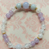 ☆ブルーレースアゲート(10mm) *良縁に恵まれる *信頼性を育む *トラブル回避 *感情コントロール ☆アクアマリン(8mm) *人間関係円滑 *コミュニケーション能力up *絆を深める *負の念を流し浄化する ☆ラベンダーアメジスト(6mm) *人を見抜く力、決断力 *絆を結ぶ ☆ホワイトカルセドニー(8mm) *絆を深める *コミュニケーション能力up *人間関係良好 ☆ローズクォーツ(4mm) *無条件の愛 *魅力up *精神的潤い *調和と安定 ☆クラック水晶(6mm) *トラブル回避 *幸運、成功サポート ☆サイズは15cmになります。 ◎ムーンストーンとは 月のパワーが宿っているとされ 思いやる心を育て人間関係やパートナーと円満な関係を長続きさせてくれます。 癒やし効果も絶大で月のエネルギーを受容しているので人間の生理的な周期や情緒のバイオリズムを整え穏やかな生活を送るサポートをしてくれます。 そして、感受性も高めてくれるのでインスピレーションが高まりアンテナが感受しやすくなったりスピリチュアル面においても直感力を高め予知能力が働くなどの効果も願望により発揮してくれます。 ・6月の誕生石