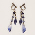 使用素材:紫金石・スワロフスキー・アクリル 基本金属:金古美(真鍮美) 長さ:飾り部分5㎝ ※ピアスに変更可能です。お支払いの直後にご連絡ください。 お花のカラーをモチーフとしたアクリルパーツを使い、透けるようなスワロフスキーとカラーモチーフの青、深い色合いの紫金石とメタルパーツという、異なる青が魅力的なイヤリングにしました。 ※送料には梱包代が含まれています。クリックポスト・宅急便コンパクトのいずれかで発送いたします。 ※天然石(シェル・淡水パールなどを含む)ビーズは天然物のため、色味や大きさや形状が粒によって異なります。また、通し穴周辺を中心に割れ・欠け・ひび・傷あるものもございます。こちら、ジュエリーとは異なりますのでご了承お願いいたします。 ※天然石・素材の名称・色・形状は素材購入時の商品の記載によっています。