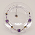 使用素材:アメシスト・スワロフスキー 基本金属:ロジウム(シルバー・銀) 長さ:本体15㎝+アジャスタ分5㎝ アメシスとスワロフスキーのみを使用した、きらめきが綺麗なブレスレットです。 大きめのスワロフスキーは半分ずつ紫色と金色と色が異なります。 細身のデザインのため、ほかのブレスレットや腕時計と合わせていただくのもおススメです。 ※送料には梱包代が含まれています。クリックポスト・宅急便コンパクトのいずれかで発送いたします。 ※天然石(シェル・淡水パールなどを含む)ビーズは天然物のため、色味や大きさや形状が粒によって異なります。また、通し穴周辺を中心に割れ・欠け・ひび・傷あるものもございます。こちら、ジュエリーとは異なりますのでご了承お願いいたします。 ※天然石・素材の名称・色・形状は素材購入時の商品の記載によっています。