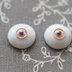 ジェムタイプ(銀箔と透明釉薬使用) ふちどりに銀より線使用 直径:約19.5mm 虹彩サイズ:約9mm ※0.5mm単位 計測部分によって0.5mm前後誤差あり ドーム(虹彩部分を横からみた時の盛り上がり)少しあるが、銀より線の高さもあり、わずかに出ている程度 カラー:ピンク×ゴールドミックス、瞳孔膿パープル 特記事項:片目の瞳孔に少し位置ずれあり、もう片方の虹彩近くに塵の混入 素材:銅板、ガラス、純銀線、銀箔など 共通のご説明は【商品について・諸注意事項】にまとめています。ご購入前にお読み下さい。 https://l-du-e.booth.pm/items/2993748