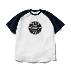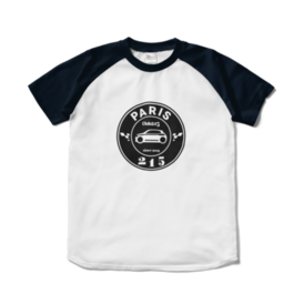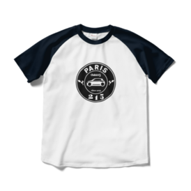 ネイビー×白 ラグランプリントTシャツ PARISロゴ