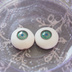 カッパータイプ(銅板の色をいかした虹彩カラー・透明釉薬使用) ふちどりに銅線使用 直径:約18mm 虹彩サイズ:約8.5mm ※0.5mm単位 計測部分によって0.5mm前後誤差あり ドーム(虹彩部分を横からみた時の盛り上がり)なし、平らに近い形状 カラー:グリーン系、瞳孔まわりに部分的にブルー、瞳孔ブルー 特記事項:片目の瞳孔少し位置ずれあり、白目部分わずかに銅線の腐食で緑っぽい部分あり、虹彩全体にごく細かい気泡の混入 素材:銅板、ガラス、銅線など 共通のご説明は【商品について・諸注意事項】にまとめています。ご購入前にお読み下さい。 https://l-du-e.booth.pm/items/2993748