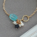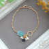 大和守安定のイメージブレスレットです。 安定のイメージカラーである明るいブルーにシーブルーカルセドニー、白にマザーオブパールを使用しました。 マザーオブパールは真珠貝の母貝を切り出したもので、真珠とはまた違った優しい風合いが魅力です。 とろっととろけるあめ玉のようなシーブルーカルセドニーは存在感があり、安定の甘い風貌が表現できたかと思います。 中心のモチーフに清光とお揃いの星形パーツをつけています。こちらは袴の濃紺をイメージしてブルーゴールドストーンの星です。 中心のモチーフはしゃらしゃらと揺れるタイプです。 女性向けのブレスレットの平均サイズで全長約17~18cmで作成しておりますが、アジャスターを希望される方はアジャスター有りを選択してください(金額は変わりません)。 ※作品を複数購入いただく場合、梱包を含めた合計の重さが100gを超える場合は追加料金が必要になります。目安としては、5点以上からは100gを超える場合があります。作品のサイズやボリュームにもよりますので、複数購入される場合は決済前にメッセージからお問い合わせください。 [パワーストーンとしての効果] ■シーブルーカルセドニー:安らぎを与える・緊張をほぐす・感情を整える、など ■マザーオブパール:包み込む愛情・持ち主の愛情を高める、など ■ブルーゴールドストーン:判断力の強化・目的達成のためのサポート・成功のアイデアを導く、など