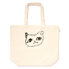 トートバッグ - L - プリント面積中イラストレーター/画家 J.F.Kooya の作品「ネコチャン」をプリントしたトートバッグです(インクジェットプリント)。 写真のように肩から掛けられて、マチもある丈夫で大きなバッグです。黒色のプリントですが、「真っ黒」ではありません。インクジェットプリントなのでわずかににじみが見られます(写真参照)。