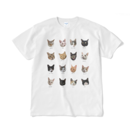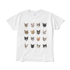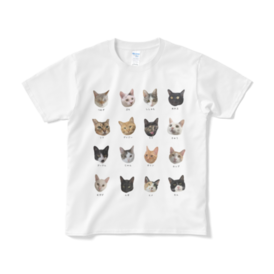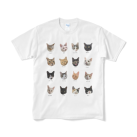 Tシャツ(短納期) - XL - ホワイト猫見家のレジェンド、テキーラ初代店長と、チビじぃが背面に。 表には、猫見家Familyの つむぎ・ぷち・ししゃも・めかぶ・リク・デイジー・ラテ・きゅう・プーアル・じゅん・オリン・ホップ・むすび・ムギ・ヒメ・モルが勢揃い⭐︎ この商品はpixivFACTORYで作られた商品です。サンプル画像は完成イメージのため、実物と異なる場合があります。
