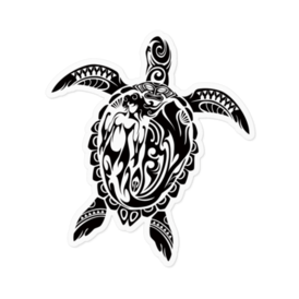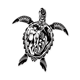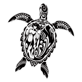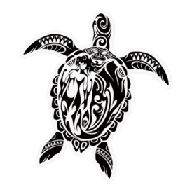 トライバルデザインのウミガメ。ハワイの言葉でホヌはウミガメ。甲羅の模様にハワイの神様のティキと人魚を取り入れた。