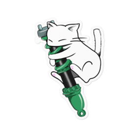 車高調を抱いた猫のステッカーです。 この商品はpixivFACTORYで作られた商品です。サンプル画像は完成イメージのため、実物と異なる場合があります。