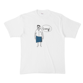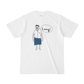 Tシャツ - XL - 白ルンギーを着たインドのおじさん。「るんぎー」と言っています。 この商品はpixivFACTORYで作られた商品です。サンプル画像は完成イメージのため、実物と異なる場合があります。