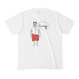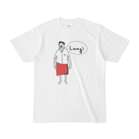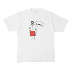 Tシャツ - XL - 白ルンギーを着たインドのおじさん。「るんぎー」と言っています。 この商品はpixivFACTORYで作られた商品です。サンプル画像は完成イメージのため、実物と異なる場合があります。