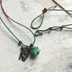 以前に出していた原石チョーカーシリーズと同じイメージで制作しました。 エメラルドの原石をラフな爪で留め。 銀のカケラを溶かしたり、叩いたりしながら 制作したラフなプレートに Eとエメラルドの硬度、7.5を刻印してあります。 原石もですが、プレートもその時の解け方などで 同じものは作れませんので1点物になります。 今回分は以前の物よりすこしお値段上がってしまいましたので。 お好きな小文字アルファベット&数字をお聞きして 打ち込んでお渡しいたします。 プレートの上部分の余白にお入れできます。 アルファベットなら3文字分 数字は5~7文字ほど 特にない場合はもちろんそのままで。 紐は、80㎝以下で調節いたしますので お好きな長さをご指定くださいませ。 80㎝のままですと、そのまま頭を通すことができる長さです。 写真だとヒモの結び目がそのままになっていますが、 長さのご指定をいただいてから結び目カバーをつける予定です。 ご自身で長さをかえたい場合などは、 結び目カバーなしでお渡しいたします。 もろもろご指定がない場合は2~3日中に発送いたします。 長さ変更、刻印などの作業後の発送は少々お時間いただきます。 1週間以内に発送いたします。 石:エメラルド原石 約6×7㎜ フック プレート:silver950 結び目カバー:シルバー925 紐: ポリエステルグラデーション染め 太さ0.8㎜ 長さ80㎝以下でご指定ください。