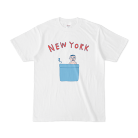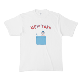 Tシャツ - XL - 白気鋭のクリエイター"NIKORASU GO"によるデザインT。 2013年INDIKETにてアート部門のグランプリ、他、自身のイラストを生かしたデザインワークを展開。特徴は、殆どの作品を仕上げ以外あえてCGを殆ど使わずハンドメイド。(CG作品もありますが、それも元形は全て手書き)ロゴは一文字一文字手作業で配置。またコピーライトの部分にも手を掛けております。自分のクリエーションを気に入ってくれ、応援してくれる少数の方に買っていただき、大切に着ていただければ幸せです タグ:ユーモア ネタ おもしろ ダジャレ ニューヨーク お風呂 入浴 温泉 *このデザインがドラマあのキスの衣装に使われていた模様、松坂桃李さんがきてるのみたよお