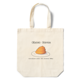 エコバッグ - 360×370×110(mm)チョココロネのイラストをあしらったエコバッグの登場です。 スーパーなんかでお買い物の際に使用すると、 「チョココロネかぁ、パンコーナー行ってみよ」 と、周りの人もパンの購買意欲をそそられ、パン業界の貢献につながるかもしれません。 この商品はpixivFACTORYで作られた商品です。サンプル画像は完成イメージのため、実物と異なる場合があります。