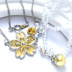 桜や薔薇、かすみ草の様な白パールが散りばめられた、初めて恋をしたあの時の気持ちになれる、心ときめくネックレス。 黄色の桜の下では、キラキラ輝くガラスストーンとイエローパールが揺らめきます⁎⁺˳✧༚ 金具の色:ロジウム(シルバー) チェーンの長さ:約40センチ(長さを調節するアジャスター無し +¥50でアジャスター付きに変更可能★ +¥50で50センチチェーンに変更可能☆) チャームの大きさ 縦:約2センチ 横:約3センチ 揺れるパールチャームの長さ 縦:約2.7センチ 横:約0.8センチ 手作りハンドメイド商品です。 海外製のパーツも含まれます。バリや細かなキズが含まれている事ご了承ください。 ご購入の際は細かな傷、左右の長さの違い、レジンの気泡はみ出し、色のダマなどお見苦しい点多々ありますでしょうがご了承願います。 金属アレルギー、レジンアレルギー、ステンレスアレルギーの方はお気をつけください。