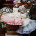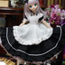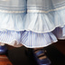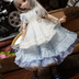 セット内容:ワンピース、エプロン、カチューシャ、パニエ ボリューム感があるロングの円形スカートのワンピースと、ピンタック入れたエプロンの不思議のアリスをモチーフにしたセットです。 アンダースカートはチュール生地で制作しますので、ワンピースのふくらみ感を保持できます。 エプロンに合わせて着用でも、普段着としてワンピース単体での着用でも可能です。汎用性があるドレスを目指しました。 カチューシャの土台はステンレス製となりますので、折れる心配はありません。 【ワンピース】 軽やかさを出すために薄い綿生地でワンピースを制作しました。 円形+ギャザーでボリューム感を出しました。 ウエスト部分には半透明のレース生地を挟んで縫製しました。 胸元の白い生地部分はピンタックが入り、パステルブルーの共布でギャザーフリルを取り付けてあります。 首元には黒のリボンとトランプ柄のチャームが縫い付けてあります(固定式です)。 裾のレース部分にはパールの飾りが縫い付けてあります。 エプロンがなくてもワンピース単品で楽しめるように製作しました。 。。。。。。。。。。。。。。。。。。。。。。。。。。 【エプロン】 軽やかさを出すために薄い白綿生地で制作しました。裏地がついておりませんので、微か透明感を出してあります。 めいいっぱいギャザーを寄せており、ボリューム感があるエプロンになります。 腰には金色のチャームを縫い付けたります。(黒バージョンは銀色になります) ウエストの結び目はご自身で結ぶ形になります。 【カチューシャ】 細目のステンレス製カチューシャにワンピースと同じ生地を用いてカチューシャを制作しました。 大き目のトランプ柄のチャームを縫い付けてあり、またパールも縫い付けました。 【パニエ】 裾のフリルはパステルブルーのストライプ柄生地でフリルを制作しました。 その下にある2層のパニエチュール生地の裾には、白の生地で制作したフリルが縫い付けてあります。 着用時裾からアイボリーのフリルが見える形になります。 パニエはハードチュールで制作しました。