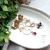 使用素材はレジン(接着に使用)、真鍮、チェコビーズ、チェコガラス、スワロフスキー、