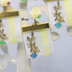 『SHUFFLE×Ringが誘う鐘の音』『Ring.A.Bell』 イメージのリボンピアス・イヤリングです 薔薇の部分にそれぞれの髪色のシェルを乗せ、鈴蘭にぶら下がるひし形は目の色のシェルを入れてみました。 それ以外は白と金で統一して衣装に寄せてみました。 大きさ:全長約4センチ リボン部分約3センチ 〜注意事項〜 *肌に触れる部分に金属を使用しております、金属アレルギーをお持ちの方はご注意ください。 *手作りなのでパーツの配置・リボンの長さなの多少異なります、ご了承ください。 *商品使用による如何なる事故や損害、また用途以外の使用方法での損害等が生じましても一切の責任を負いかねます。その旨ご了承下さい。