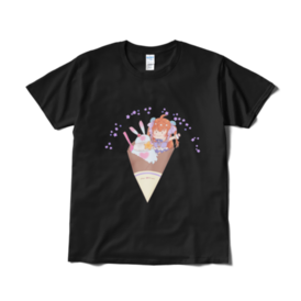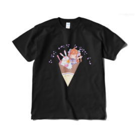 Tシャツ(短納期) - XL - ブラック閲覧いただきありがとうございます! こちらはシーラ・シル・クリームってやっぱりアイスみたいだな~って思ってたら出来たイラストをTシャツにしてみました! 白色もありますのでお好きなカラーで来ていただけたらと思います! ・こちらのTシャツは男女共用サイズになってます注文の際はご注意ください ・画像はイメージです。お手元に届く現品には微差があります ・キャラクターデザイン:Hiy様