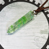 【天然石とガラスのレジン柱ペンダント】六角ポイントタイプ 天然石とガラスをレジンに封じたロングペンダント。 ピンク:ローズクォーツ 水色:アクアマリン 紫:アメジスト オレンジ:カーネリアン 黄緑:ペリドット 【サイズ】 トップ:レジン 4.5cm 紐:スエード100cm 【作品に関しての注意事項】 ・全て手作業で制作しておりますので、接着剤のはみ出しやパーツに多少の傷、歪みがある場合があります。 ・レジン作品は基本的にUVカット加工は施しておりません。 時間を経る事で黄変、研磨されていく過程も作品の一部と考えています。 ・市販の手芸パーツを使用しておりますので、金属アレルギーがある方はご注意ください。 18金、シルバー、チタン、樹脂などを使用している場合は明記しております。 ・着用して、肌に異常が出た場合は直ちに使用をおやめください。 ・無理やり引っ張たり、乱暴に振り回した場合は破損する危険がありますので強い力を加えないでください。 ・汗や水、熱湯、温泉などで変色したり、溶けだしたりする可能性があります。 水仕事の際は外したり、汗や水気をふき取ってから保管してください。 ・レジンは高温多湿や直射日光の当たる場所には放置しないでください。 放置すると、急速に変色いたしますのでおやめください。 ・小さな作品はお子様やペットの誤飲にご注意ください。 ・撮影の環境上、掲載写真と実物の色味が異なる場合があります。
