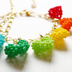 ふっくらとした立体的な形のカラフルなハートモチーフが揺れるブレスレットです。 鮮やかなレインボーカラーで元気が出そうな色合いです♪ ビビットカラーでありながら、シードビーズを編み上げたモチーフがレースのような繊細な雰囲気です。 チェーンのお好きなところにカニカンをお留めいただくことで、長さの調節ができます。 Heart Bouquetの初期の頃から作り続けている虹色ハートです。 少しずつパーツを変えながらご紹介しております。 今回はエンドチャームが雲のようなミルキーホワイトカラーのハートになりました。 カニカンもハート型。。。! チェーンにつながっているすべてのパーツがハートになりました。 ハート尽くしをお楽しみください。 おそろいのネックレスもご用意しております。こちらもぜひご覧ください。 https://heartbouquet.booth.pm/items/3090572 ◇ ◇ ◇ 1点1点手作業で制作しておりますので、大きさ、形状は多少異なります。 繊細な作品ですので、丁寧なお取り扱いをお願いいたします。 サイズ:<モチーフ部分>縦約1.6cm×横約1.7cm <チェーン全長>約19cm(モチーフ部分除く) 材質:ガラス、ナイロン、金属