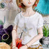 ※60センチ級ドール向け(SD,DD) 《 あの日の海で出会ってたかも 》 シーグラスを使ったネックレスです🏝🌊 青みがかったものと白っぽいのとありますので、それぞれ番号を振りました。 お好きなものを選んでください。 ※DDの子がつけている6番のシーグラスが一番大きいものになります。 透明感なども参考になさってください。 シーグラスなのでキラキラとした派手さはありませんが、自然ならではの独特の風合いや丸み、素朴さがたまらないです。癒やされます。 昔からシーグラスに憧れがあり、シーグラスのアクセサリーは絶対に夏のアクセサリーのラインナップにいれたかったので、嬉しいです。 夏の思い出を、是非ドールと一緒に。
