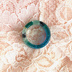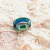 半分は深い緑と青のレジンを混ぜて、半分は緑や藍色の天然石の欠片を埋め込んでいます。