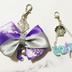 レジンとリボンで作成したチャームです✧︎ リボンにJのイニシャルと紫色の石のチャームがついており、数字と貝殻のチャームはカニカンで好きなところに取り付け可能です˙ᵕ˙⑅ 大きさは2枚目画像、裏面は3枚目画像をご参考ください。 その他ハンドメイドアクセは #かまぼこハンドメイド で閲覧出来ます...♪*゜ ※素人ハンドメイドですので凹凸、気泡などいたらない部分があるかと思います。 完璧をお求めの方はご購入をご遠慮くださるようお願い致します。 リボンに取り付けているラインストーンなどはしっかり接着しているのですが引っ張ったり衝撃で取れてしまう可能性がございます。 ご理解の上ご購入ください。 発送はアルコールスプレー後、プチプチで衝撃防水考慮し梱包して送らせていただきます。 入金確認後、発送はなるべく翌日に送れるよう心がけますが遅れてしまう場合ご連絡致します┏○))
