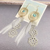 フェザーパーツの後ろにはグレーグリーンの大柄なレースを下げています。