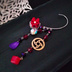 つまみ細工と歯車のイヤーフック 和風 カジュアル レッド 412