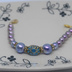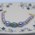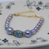 アラベスクフラワー模様のチェコビーズと、透明感のある樹脂パールで作成したマスク留めです。 サイドのパールはブルーとパープルの2色使いとなっております。 ビーズの間にはロンデルを挟み、華やかに仕上げました。 上品ながらも華やかな印象でご着用いただけるかと思います。 マスクの耳ゴムにつけて着用していただくことで、耳の痛みを軽減することのできるマスクアクセサリーです。 髪に絡みづらいゴムを通して制作しているため、優しく頭にフィットしてくれます。 こちらは片側フックとカニカンで着脱していただくタイプになります。 先にマスクの耳ゴムにカニカンを付けてからご着用いただくと、スムーズに利用できるかと思います。 フック側にブレスレット用のアジャスターを付けることで、ブレスレットとしても利用いただける2way仕様でお仕立ていたしました。 ブレスレットで利用される際には、フックとフック留めが外れないようにご注意ください。 サイズ:本体 全長約14.7cm アジャスター含 全長約21cm ※こちらは一点物となります。 minneでも販売中のため、タイミングによっては品切れとなる場合がございますが、予めご了承ください。