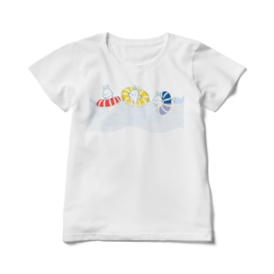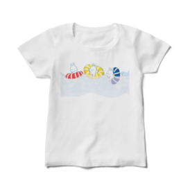 レディースTシャツ - L - 白うさぎの夏休みTシャツです。 この商品はpixivFACTORYで作られた商品です。サンプル画像は完成イメージのため、実物と異なる場合があります。