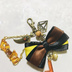 レジンとリボンで作成したチャームです✧︎ リボンの下にLのイニシャルとオレンジの石チャームがついており、数字と牙のチャームはのカニカンで好きなところに取り付け可能です˙ᵕ˙⑅ 大きさは2枚目画像、裏面は3枚目画像をご参考ください。 その他ハンドメイドアクセは #かまぼこハンドメイド で閲覧出来ます...♪*゜ ※素人ハンドメイドですので凹凸、気泡などいたらない部分があるかと思います。 完璧をお求めの方はご購入をご遠慮くださるようお願い致します。 リボンに取り付けているラインストーンなどはしっかり接着しているのですが引っ張ったり衝撃で取れてしまう可能性がございます。 ご理解の上ご購入ください。 発送はアルコールスプレー後、プチプチで衝撃防水考慮し梱包して送らせていただきます。 入金確認後、発送はなるべく翌日に送れるよう心がけますが遅れてしまう場合ご連絡致します┏○))