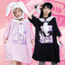 Jillpunkロリータ夢かわいい 可愛いおしゃれ 萌え テーマパーク クレーンゲーム ネクタイ付きレースヘム水兵服 兎耳セーラーカラー ゆったりワンピース・ドレス オリジナル原宿おしゃれ姫系森女