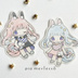 朝と夜の遊園地シリーズから、メリーゴーランドの木馬を擬人化した女の子たち。 それぞれの手にはお互いの木馬のぬいぐるみを持っています。 夜の木馬(ぴんく髪):るる 朝の木馬(水色髪):ひな るるは夜の遊園地を静かに見守り、ひなは朝の遊園地をやさしく見守っています。 シールはツルツルとしたビニールのような表面です。 半透明のような透け感のあるシールで、貼った場所によってお色が変わります。 (耐水ではありません) 仕様------------------------------------ 6.7×5.5cm 画像の大きさ比較はB5サイズのノートです。 ご購入時の注意点----------------------------------- * 写真と色 * ご覧いただいているお写真と、実際の商品では少々色の違いがある場合がございます。 あらかじめご了承ください。