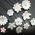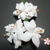 ご覧頂きありがとうございます。 一越ちりめんを使ったつまみ細工の百合の豪華な髪飾り16点セットです。 是非 写真をタップして全体を見て下さい。 ☆大きな百合の花が3輪の15足コーム飾り ☆百合の花が2輪の10足コーム飾り ☆単独で飾れる小花のUピンが10輪 ☆水引の三つ編みの飾りのUピン ☆水引の淡路玉の飾りのUピン ☆つまみ細工とビーズの下がり飾りのUピン ☆タッセル飾りのUピン コーム飾りにはどちらも百合のお花だけではなく蕾や葉や小さな小花も飾ってあります。 豪華なセットの髪飾りですので どんな髪形のアレンジにも対応できます。 下がり飾りとタッセル飾りはUピンで仕上げてありますがカニカンが付いており コームの左右どちらにでも付けられる仕様になっています。 Uピンで飾ることも コームと一緒に飾る事もできます。 白い百合の髪飾りなので和装、洋装どちらでもお使い頂けると思います♪ 結婚式や成人式、卒業式などの髪飾りにいかがでしょうか? 〖サイズ〗 ※15足コーム 3.5cm×6cm 百合大 直径11cm 中 直径9.5cm 小 直径6.5cm 全体 縦11cm 横16cm 高さ9cm ※10足コーム 3.5cm×4cm 百合大 直径 9cm 小 直径6cm 全体 縦9cm 横11cm 高さ7cm ※Uピンの長さ 7cm その他の小花 各 直径 4cm 〜 2.5cm ※水引飾り 縦6cm 横8cm(Uピンを除いた長さ) ※水引の淡路玉飾り 5cm(Uピンを除いた長さ) ※下がり 全長 22cm(Uピンを除いた長さ) ※タッセル 9cm(Uピンを除いた長さ) 1つ1つ丁寧にお作りしていますが 素人による手作り作品ですので接着剤のハミ出しや歪み等がある場合があります。 ご理解頂けると幸いです。 ちりめん生地は水に弱く濡れると縮んでしまいます。 また長時間の圧迫でも変形してしまいます。 ご使用時や保管には十分にご注意ください。 実際の色はお使いのモニターによって多少異なって見えることがあります。 ご了承ください。 発送は郵便局からの定形外郵便での発送になります。 土日、祝日の発送は出来ません。