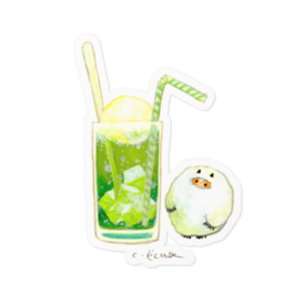 イエティの妖精、カジティの夏のクリームソーダステッカーです。 コーティングによる防水機能、さわやかなグリーンとアイス、透明なストローが涼しいカジティを身近なものにくっつけて🍧 この商品はpixivFACTORYで作られた商品です。サンプル画像は完成イメージのため、実物と異なる場合があります。