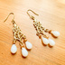 アンティーク調の真鍮パーツと、まろっとしたガラスビーズが昔のシャンデリアを思わせる耳飾りです。