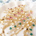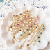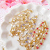 透明と風を感じて。 クリスタライズとシルバーラインのFPチェコガラス、 2,5mmの小さなパールビーズ、押し加工のデザインチェーン。 華奢に繋げて、纏めて、タッセルの様に。 長めで揺れて、透明感と輝きを。 ゴールドカラーは上品に艶やかに。 3色のクリスタライズをセレクトしました。 少し目立つので撮影にも向いています。 繊細なつくりなので、合わせる洋服を選びません。 オリエンタルな柄ドレスにも、真っ白なワンピースにも。 セクシーに、ランジェリーや水着にも。 男の子ドールが片方付けしたらとてもえっちで良いと思います!(大声) SD・DDサイズ。 ペアでの販売です。 透明な樹脂製のパーツを使用、金具が目立つことなく撮影にも向いています。 小さなパールを埋め込み、目立たない部分も可愛く。 挟むだけの簡単装着。 ドール耳のホール部分(実際は開いてませんが)に 丁度挟むようにして頂けるとバランスが取り易いです。 造形により耳の形状も違う為、着用可/不可あり。 樹脂ノンホールピアスパーツ:約11mm 埋め込みラインストーン(チェコガラス):3mm クリスタライズ(クリスタルガラス)5328:3mm FP(チェコガラス):3mm パールビーズ(アクリル):2.5mm 約1.5mm幅デザインチェーン(約6、5cm) 金具:ゴールドカラー(メッキ) ※ラインストーンの埋め込みにはボンドを使用しています。 ※クリスタライズカラーのオーダー製作可能です。 ※金具カラーの変更も可能です(シルバー/ゴールド)。 ご希望の場合は備考欄にその旨ご記入頂くか、事前にお問い合わせ下さい。 ※受注製作となります。 「在庫切れ」・「お問い合わせ下さい」と表示されている商品については、 材料の在庫次第で作製可能のものもございます。 お気軽にお問い合わせ下さい。