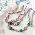 レトロ&ノスタルジック。 レトロな雰囲気のダブルフェイスチェコガラスに 2種の大きさの星コネクターを合わせて。 ビーズの雰囲気に合わせて金古美金具を使用してアンティーク調。 オリエンタルな柄のワンピースにも ふわっとレースのワンピースに合わせても。 デニムパンツに合わせるのもいいと思います。 チェーンベルトとしては勿論、ロングネックレスとしても兼用可能。 デザインチェーン部分にも留め金具が引っ掛けられるので ハイウエストのお洋服にも合わせられる様に短くも調整可能です。 SD・DDサイズ 約23cm+アジャスター5cm 約3mm幅デザインフィガロチェーン 星コネクター:約9mm/11mm(カン部分含む) ダブルフェイス(チェコガラス):6mm FP(チェコガラス):4mm アジャスターの先には同色のチェコFPを使用。 金具:金古美カラー(メッキ) ※長さサイズ調整可能です。 ご希望の場合は備考欄にご記入頂くか、事前にお問い合わせ下さい。 「在庫切れ」・「お問い合わせ下さい」と表示されている商品については、 材料の在庫次第で作製可能のものもございます。 お気軽にお問い合わせ下さい。 ※受注製作となります。