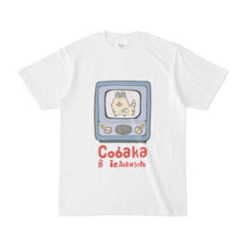 Tシャツ - XL - 白いぬちゃんがテレビの中にいるTシャツです。