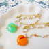 夏色ジューシー。 フルーツ型のチェコガラスを使って。 可愛らしくパールビーズを合わせ、 サイドに1箇所だけ同系色のクリスタライズを使用しちょっとアシンメトリー。 ころんと可愛いチョーカーに仕立てました。 夏色ワンピースやブラウスに。 白や黄色のサマーワンピに合わせても可愛い。 デニムやヒッコリーに合わせてもカラーコントラストが綺麗ですよ。 ランジェリーや水着にも。 チョーカーサイズは胸の大きさに関係なく 胸元の開いたトップスなら大体合わせられるのでコーデに重宝します。 MSD~SD17サイズ アジャスターにてサイズ調整が可能です。 約9cm+アジャスター フルーツビーズ(チェコガラス):約12mm パールビーズ(アクリル):3mm クリスタライズ(クリスタルガラス)5328:3mm アジャスターの先には同色の3mmパールビーズを使用。 金具:ゴールドカラー(メッキ) ※ネックレス部分のサイズ調整可能です(無償範囲内)。 ご希望の場合はメッセージにてご連絡頂くか、、事前にお問い合わせ下さい。 ※金具カラーの変更オーダーも可能です(シルバー/金古美)。 「在庫切れ」・「お問い合わせ下さい」と表示されている商品については、 材料の在庫次第で作製可能のものもございます。 お気軽にお問い合わせ下さい。 ※受注製作となります。