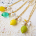 夏色ビタミンカラー! 美味しそうなレモンモチーフのチェコガラス。 しゃらっと合わせたのはチェコドロップにチェコフラワー。 FPやラウンドガラス、小粒ビーズたち。 夏色ワンピースやチューブトップに。 イエローはデニムカラーとも相性がいいですよ。 MSD~SD17まで対応。 少し長めになりますが幼SDでも大丈夫です。 アジャスターにてサイズ調整可能です。 16cm+アジャスター(約2mm幅デザインフィガロチェーン) レモンビーズ(チェコガラス):10×13mm お花ビーズ(チェコガラス):5×8mm ドロップビーズ(チェコガラス):4×6mm FPビーズ(チェコガラス):4mm ラウンドカットビーズ(アクリル):4mm ラウンドビーズ(チェコガラス):3mm メタルカラービーズ(アクリル):3mm アジャスターの先には同色のラウンドカットビーズ(アクリル)4mmを使用。 金具:ゴールドカラー(メッキ) ※ドールサイズに合わせての長さ調整承ります(無償範囲内)。 ご希望の場合はメッセージにてご連絡頂くか、事前にお問い合わせ下さい。。 「在庫切れ」・「お問い合わせ下さい」と表示されている商品については、 材料の在庫次第で作製可能のものもございます。 お気軽にお問い合わせ下さい。 ※カラーにより材料在庫限りとなります。 ※ドールは商品に含まれません。