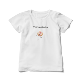 レディースTシャツ - L - 白ハムスターに齧られて穴があいた風のTシャツです。 「セ・ミゼラブル」=惨めだな という自虐ネタで、自己アピールもバッチリ! ※こちらはレディース仕様です。 ※この商品はpixivFACTORYで作られた商品です。サンプル画像は完成イメージのため、実物と異なる場合があります。