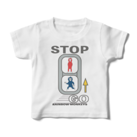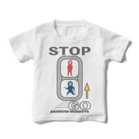 キッズTシャツ - 120cm - 正面「レインボーモンキーズ STOP&GO」 レインボーモンキーズと信号機をデザインしたキッズTシャツです。 この商品はpixivFACTORYで作られた商品です。 サンプル画像は完成イメージのため、実物と異なる場合があります。