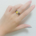 ✨閲覧ありがとうございます✨ あんスタの某ライブにもおすすめ! Crazy:Bをイメージしたハニカムリングです🐝 彼らを応援するため、ちょっとかっこよく、でもさりげなく推しを取り入れたい方へ! センターのイエローのスワロフスキーが彼らのイメージカラーを、そしてその反射光はネオンの用な色合いを演出します!✨ サイズが小さいと思う方は、 チェーンをご準備いただくことで、大将のようにキラリと輝くネックレスにすることも可能です! 【サイズ】 おおよそ11号(内周:52mm) ※サイズ変更および調整は出来ません。ご了承ください。 細身の方は13号利用者も着用可能ですが、外しにくいタイミングがございます。ご注意ください。 ※写真2枚目は当方の手ですが、普段は13号を使用しています。 ⚠️注意事項⚠️ ・制作にレジン、金属合金を使用しています。アレルギーをお持ちの方はご購入をお控えください。 ・サイズ変更は受け付けておりません。(別途材料の都合がつきましたら制作の可能性がございます。このサイズで、等ございましたら検討いたしますので、メッセージにてご連絡ください。) ・レジン制作の都合上、固まる時に収縮が起こります。そのため屋外での着用時に少々キツく感じることがございます。あらかじめご了承下さい。 【配送について】 基本的にみず濡れ防止用の袋+プチプチ二重で発送いたします。台紙はありません。 また安心パックの利用をしておりますので、【住所は互いに見えません】。こちらはご安心ください。