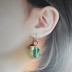 「お待たせいたしました。メロンクリームソーダでございます。 たっぷり氷を浮かべたメロンソーダに、濃厚なバニラアイスとサクランボを添えました。 アイスの溶けないうちに、お召し上がりください。」 ミントグリーンの大振りなアクリルビーズに、バニラアイスをイメージした樹脂パールを合わせました。 片方のパールだけ、サクランボに見立てた赤い丸小ビーズを飾り付けています。 トップに飾った大きなメタルパーツは、炭酸をイメージしてキラキラと輝くデザインのものを使用しています。 アクリルビーズや樹脂パールを使用しているため、大変軽やかな付け心地の耳飾りになりました。 ご着用いただくとシャラシャラと炭酸のはじけるような軽やかな音が聞こえます。 動きに合わせて片耳で小さな赤いビーズが見え隠れするのも、ちょっとしたアクセントです。 メインパーツにはやや大振りなミントグリーンのアクリルビーズを使用しています。 パールビーズは上質なナチュラルカラーの樹脂パールを用いています。 上部に配した丸カンは、スターダスト加工のされているものを使用しました。 フックピアスはステンレス製のものを使用しております。 こちらはピアス・イヤリング共通の在庫です。 少々お時間を頂きますが、アレルギー対応ピアスやネジバネ式イヤリングなどへの変更も可能です。 金額が変動するため、ご希望の方はメッセージをお送りください。専用ページを作らせていただきます。 【レトロ喫茶シリヰズ】 製作者が架空の喫茶店のメニューをイメージしてお仕立てしたシリーズとなります。 どこかレトロな純喫茶の雰囲気とともにお楽しみいただければ幸いです。