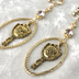 ヴィルイメージのイヤリングです。 薔薇の柄の手鏡のチャームをメインに大振りでシンプルなイヤリングになってます。 ビジューは特殊加工になっており、薄紫や黄緑を主にキラキラと色味が変わります。(5枚目参照) 手鏡のチャームは片面のみで裏面には薔薇の柄はありません(6枚目参照) ⚠️ご注文方法について ご購入の際は、1番上の作品名の項目と希望する金具の項目の2つをカートに入れてご注文ください。 間違えがあった場合はメッセージを送っておりますが、反応が無い場合はそのまま放置することになります。連絡が来ていることがわかるように通知の許可を有効にしてください 長さ(カン含む):約70mm 楕円形のパーツ:直径約40×25mm チャーム:約26×18mm ビジュー:約5mm