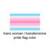 缶バッジ - 57mmこの商品はpixivFACTORYで作られた商品です。サンプル画像は完成イメージのため、実物と異なる場合があります。 (2枚目の画像は、配色の元になったプライドフラッグカラーです。これは商品には含まれていません。) trans womanのプライドフラッグカラーをモチーフにした缶バッジです。