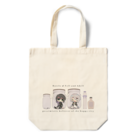この商品はpixivFACTORYで作られた商品です。サンプル画像は完成イメージのため、実物と異なる場合があります。 ――――――――― 自創作『しあわせな街の厭世信者』のフェルとアデルを瓶詰めにしたデザインのエコバッグです。