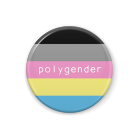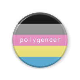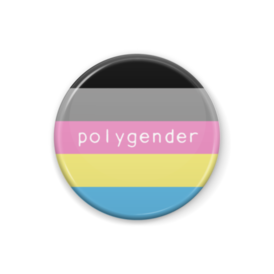 缶バッジ - 57mmこの商品はpixivFACTORYで作られた商品です。サンプル画像は完成イメージのため、実物と異なる場合があります。 (2枚目の画像は、配色の元になったプライドフラッグカラーです。これは商品には含まれていません。) ポリジェンダー(polygender)のプライドフラッグカラーをモチーフにした缶バッジです。